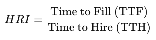 - HRI≈ 1 ⚙️ → The hiring process is hyper-efficient. Jobs are approved and filled efficiently with zero lag time. Similar to the above on warning flags and potentially low quality candidate assessment. One is not the ideal outcome, especially when your hiring team intentionally creates a stage for the application acceptance window. ⚙️
