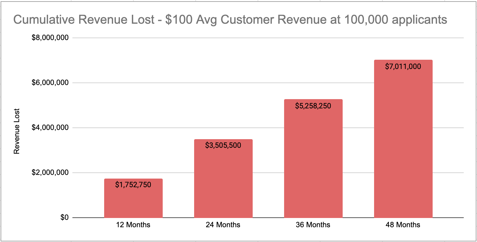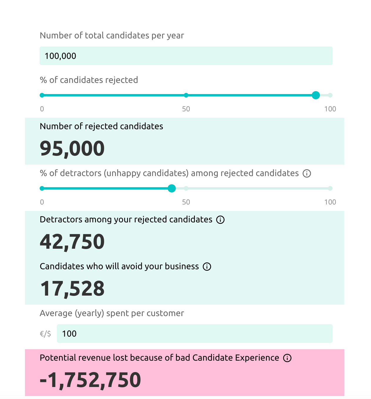 This will give you the total revenue lost in the first 12 months of that candidate rejection.